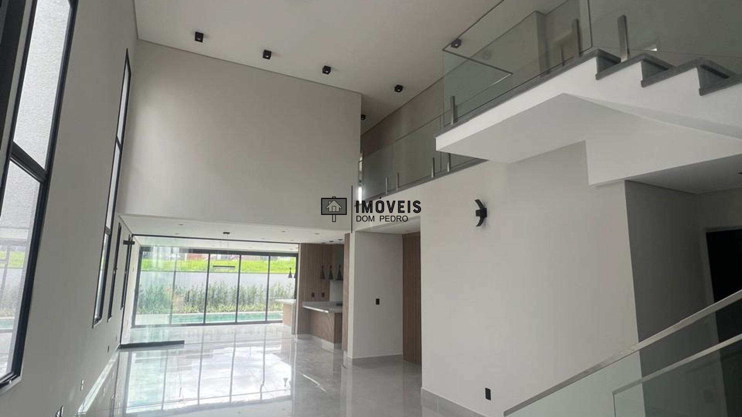 O impacto visual começa no living com pé-direito duplo de $31m^2$, criando uma atmosfera de liberdade e sofisticação.